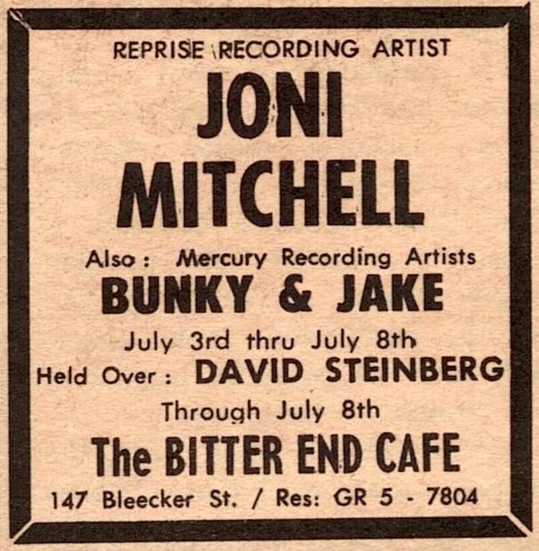 1968.07.06 Joni's next appearance The Bitter End New York, NY