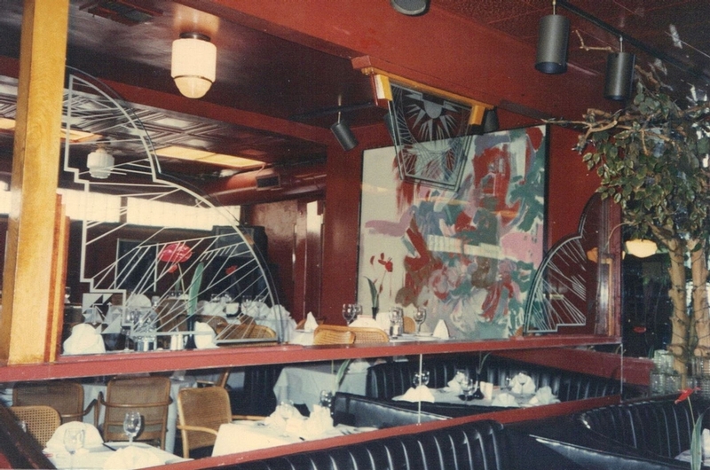 In 1979 Nucleus acquired new partners, the Venieros, who introduced fine vintage California wines, hooked up the restaurant with the Garlic Festival, and expanded the premises. Evidently, though, it remained unbeautiful. According to the Los Angeles Times in 1976, the dining room was windowless and "The front door leads you down a long corridor that makes you think you've walked in the back door by mistake." In 1988 it sounded pretty much the same. A review by Alan Richman describes the entrance as "a nightmare, a series of twists and turns along a gloomy cinder-block passageway," adding that the uninviting exterior was "white cinder-block, the front door solid black, the overhead awning worn out." (He liked the place once he got settled.)