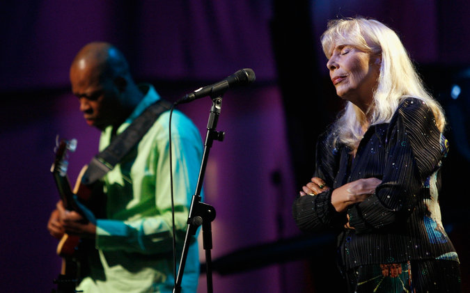 Joni Mitchell, who was reported to be in intensive care on Tuesday, performing in Los Angeles in 2008. Credit Mark Mainz/Associated Press