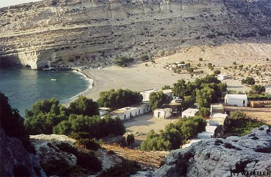 There were no homes in Matala, "just two grocery stores, a bakery where the owner made fresh yogurt and bread, a general store with the only phone in town, two cafes and a few rental huts," remembers Joni in an interview. "I don't know what their business was before people came."