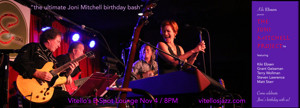 Joining Ebsen are Grant Geissman (guitar), Terry Wollman (guitar), Steven Lawrence (bass), and Matt Starr (drums). To formally introduce her Joni tribute project, Kiki chose Vitello's Upstairs as an intimate venue for friends and fans of Joni Mitchell to enJoy Songs ranging from her most familiar FM radio hits as well as many of her most intellectual, soulful album cuts that are best known to lifelong fans who cherish and curate their copies of her full discography.