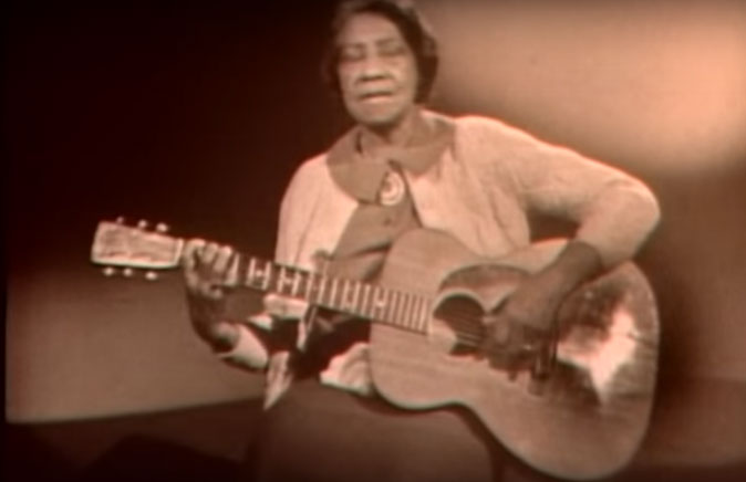 Elizabeth "Libba" Cotten wrote her enduring classic "Freight Train" (watch above) at age 12, after saving up money for a guitar by stoking a neighbor's iron stove for $1 a day. A southpaw performing in the Piedmont folk-blues style, Cotten taught herself to play by flipping a right-handed guitar upside-down, picking out bass lines with her index finger while using her thumb for melodies, in a style that bore her name - Cotten picking - and would become widely known and emulated. After giving up the guitar for 25 years (she cared for the children of Ruth Crawford Seeger and Charles Seeger), Cotten resumed playing at 68 and began her long-delayed recording career on Folkways Records. She played until shortly before her death in 1987.