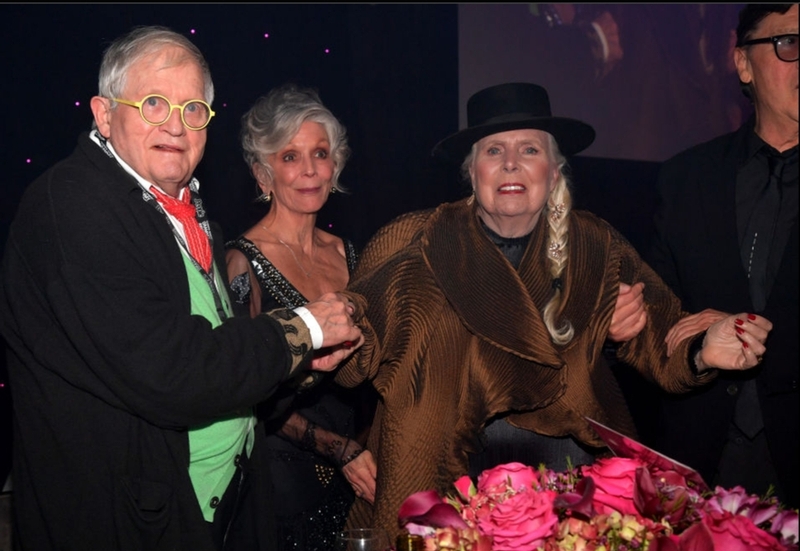 "I'm so touched that she comes to share the night with all of us," he said. "Please welcome the inimitable Joni Mitchell."