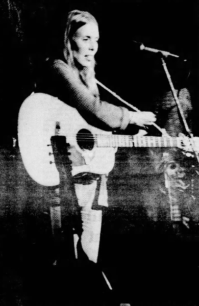 Joni Mitchell, folk-rock female vocalist performed before a crowded hillside audience Tuesday night at the Mississippi River Festival on the Southern Illinois University campus at Edwardsville.